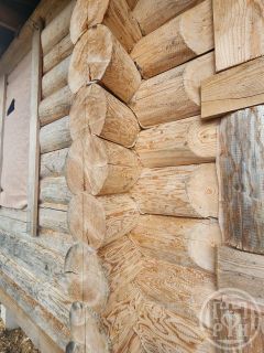Бревно оцилиндрованное, рубка на участке с подбором по диаметру из бревна высокого качества.