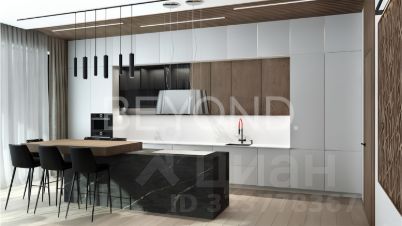 Дизайн-проект кухни от Giulia Novars. идеально дополнен кладовой комнатой для хранения продуктов. Также на первом этаже есть гостевая комната и большая гардеробная при входе.