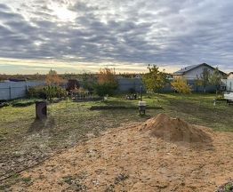 12 соток, ровный, разработан, есть посадки, со всех сторон огорожен забор- металлопрофиль. БЕЗ БОРЩЕВИКА. Есть бытовка.