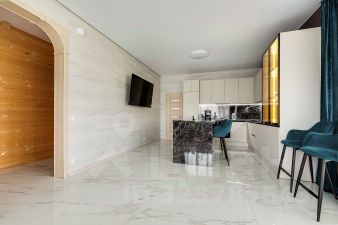 керамическая плитка в прихожей, кухне-гостинной и санузле, в комнатах ламинат.