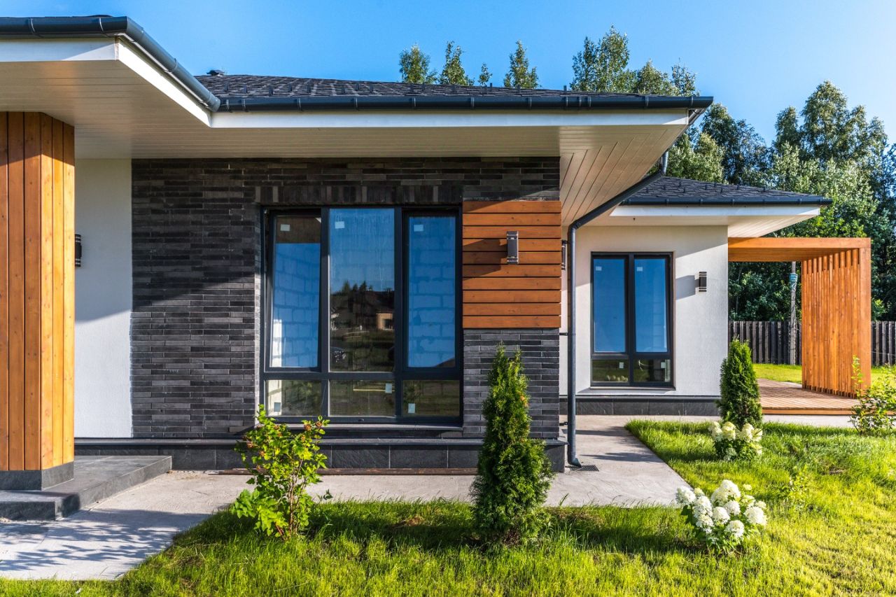 Отделка наружная - декоративная штукатурка, клинкерный кирпич, дерево, керамогранит.