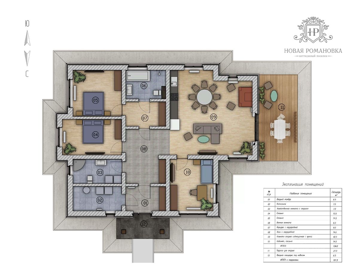 Планировка трансформер: 3 спальни, просторная кухня-гостиная 42 кв.м., котельная, 2 с\у, терраса 20 кв.м.