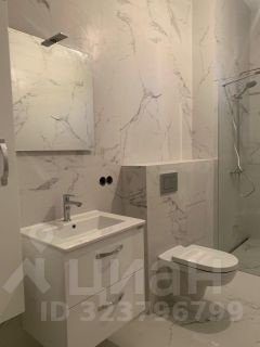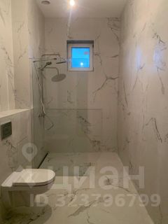С/у с окном, отделка - керамогранит 1,2*0,6. Установлена инсталляция с унитазом Villeroy&Boch, душевая кабина, раковина, межкомнатная дверь.