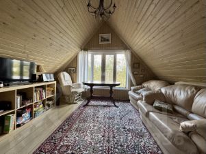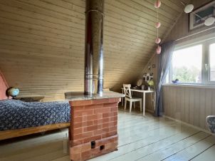 В доме: на первом этаже имеется кухня с газовой плитой (баллон), гостиная зона с камином, спальня и санузел с душевой кабиной, установлен бойлер. На втором этаже расположено две комнаты. Во все помещения заведены электрорадиаторы, установлена система умный дом. На входе в дом - веранда.