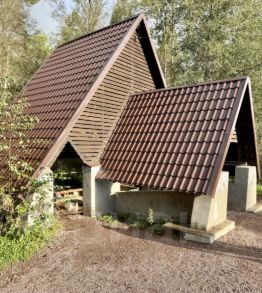 Для активной жизни на участке есть футбольная, волейбольная площадки, баскетбольное кольцо, батут.