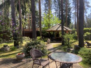 Участок 12 соток находится на территории естественного хвойного леса в окружении высокого класса сложившейся частной застройки. На участке 23 столетних сосны, есть плодовые деревья и кусты (яблони, груши, сливы, смородина, жимолость, крыжовник, голубика), грядки с клубникой. На территории есть хозблок и беседка с зоной барбекю, "детская площадка".