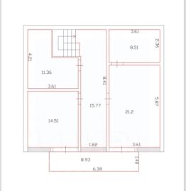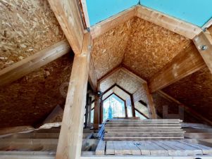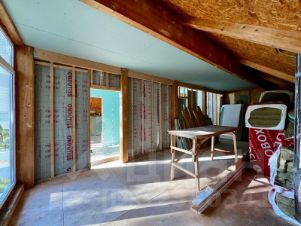 На первом этаже дома просторная кухня-гостиная с камином, комната, ванная комната и сан узел. Второй этаж - свободная планировка, утеплен, подготовлен под отделку. Сделан пол третьего этажа со вторым светом (в официальную площадь дома не входит)