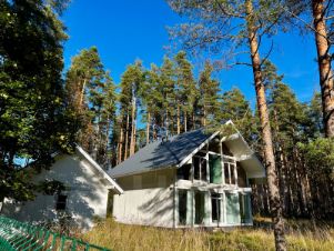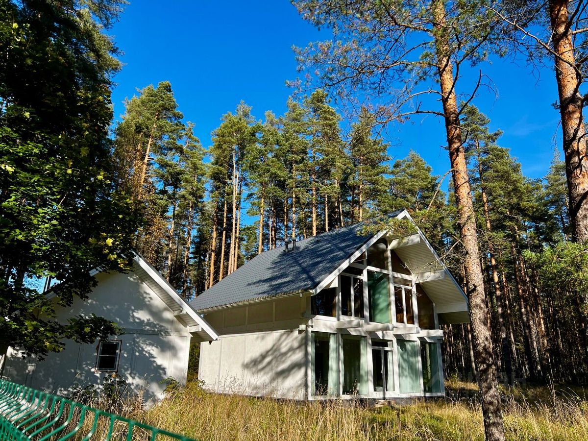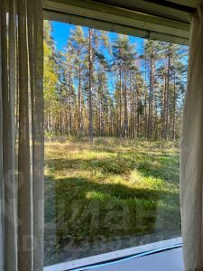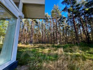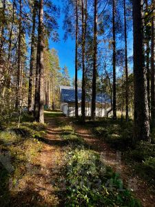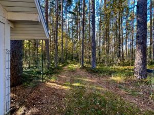 Участок хорошей прямоугольной формы. Огорожен забором 3D сетка, что обеспечивает видимость лесной зоны. С соседями соприкасается только углами участков. К дому отдельная дорога.