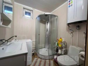 В санузле душевая, унитаз, раковина, зеркало, бойлер, стиральная машина