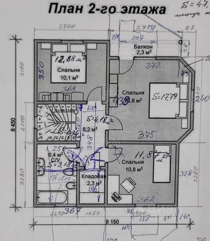 * 2 этаж: 3 спальни, выход на балкон, с/у, ванна, и хоз комната.