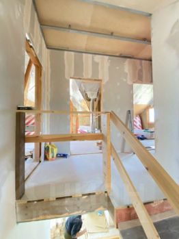 * Отделка первого этажа гипрок, шпаклеван и оштукатурен. Второй этаж планировалась комбинация вагонки и гипрока.