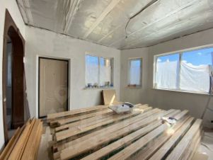 * Материал стен: каркас, перекрестное утепление мин. Ватой 200мм, местами 250мм.