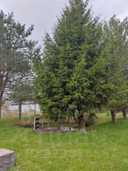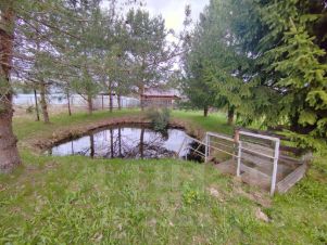 На втором участке есть пруд с лестницей для спуска. Рядом сделан фундамент под баню, заведены коммуникации воды, слива, есть септик. Участок покрыт газоном, посажены сортовые сосны и ели, фруктовые кустарники.