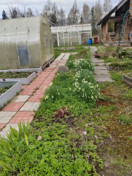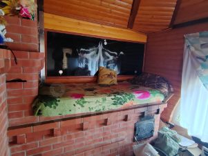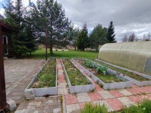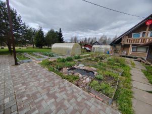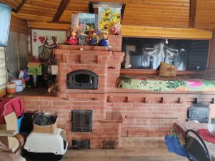 На участке есть уютный гостевой домик с русской печью (печной комплекс со спальным местом), с отделением под казан, можно запекать и готовить еду. Есть холодная и горячая вода (бойлер), слив в септик, тёплые полы. На улице есть мангал.
