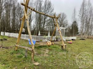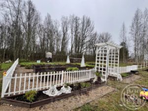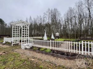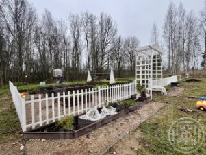 По одной стороне участка забор (откатные ворота и калитка), по остальным сетка рабица. В некоторых местах штакетник и рабица прикручены, все материалы лежат нужно просто прикрутить.
