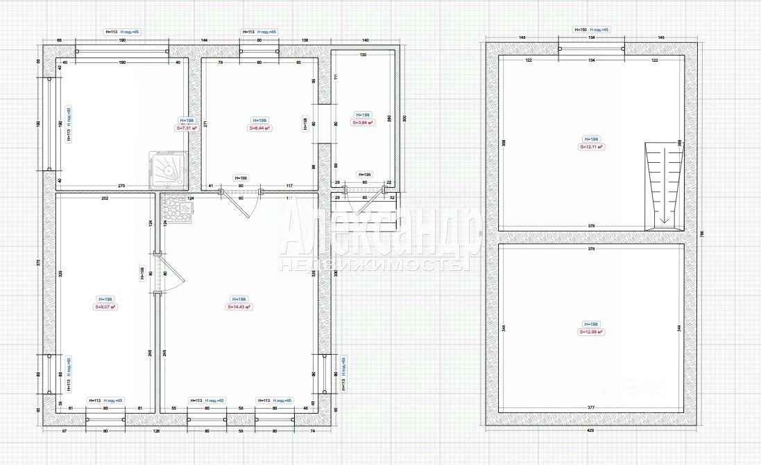Двухэтажный бревенчатый дом 5,7х7,5 м плюс веранда установлен на фундамент из бетонных свай.