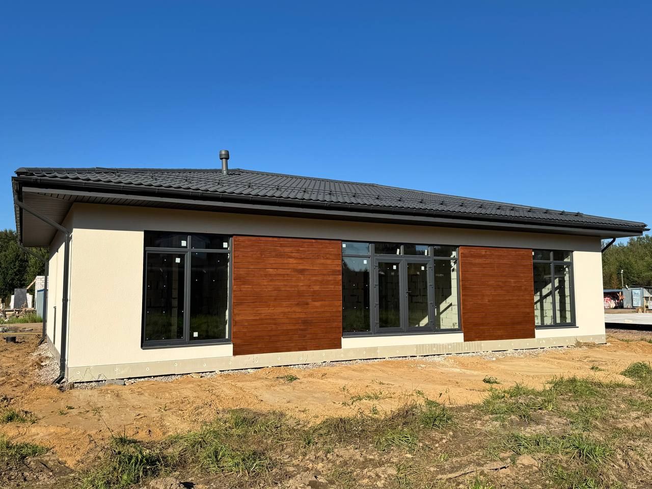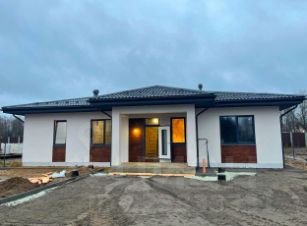 Дом с отделкой 167 м2 из газобетона 400 мм, на фундаментной плите 300 мм. Фасад: штукатурка и планкен.