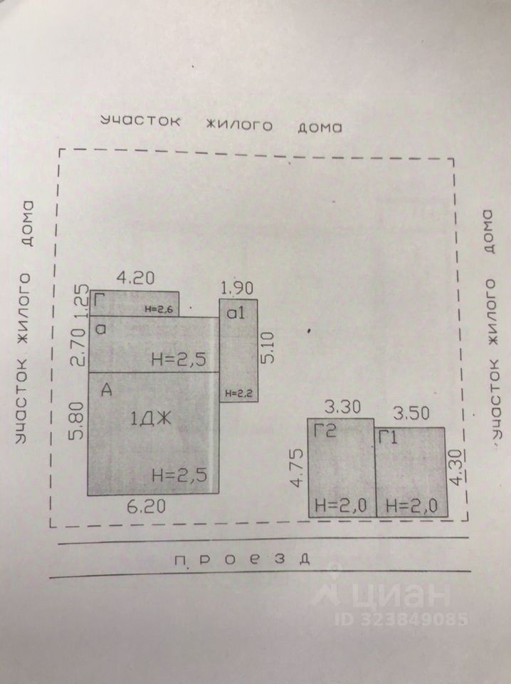 Дом на бетонном фундаменте, на участке теплица, два гаража, колодец, пристройки.