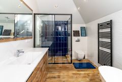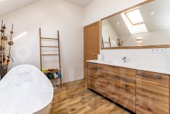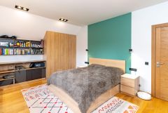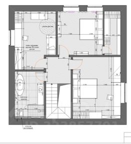 На втором этаже расположены 3 спальни: 12 квм, 24 квм и мастер-спальня площадью 25 квм с собственной гардеробной. Санузел второго этажа оборудован ванной и душевой кабиной.