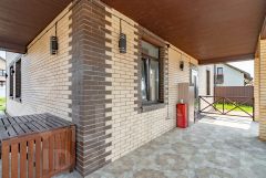 Дом построен из газоблока с утеплителем и обложен облицовочным кирпичом, фундамент - монолитная плита.