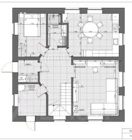 На первом этаже расположены спальня - кабинет площадью 12 квм , гостиная площадью 20 квм, санузел , кухня площадью 15 квм и котельная.