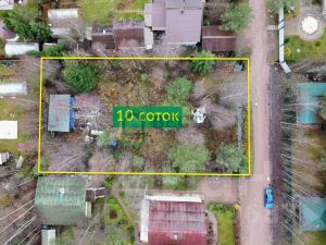 Участок в глубине садоводства, возле леса. Участок правильной формы, сухой, сделано межевание. На участке большие деревья редких пород. На участке есть бытовка для хранения вещей. Вокруг соседи проживающие на постоянной основе. На въезде - охрана, КПП, освещение улиц, детская площадка, магазин, видеонаблюдение.