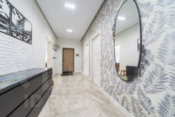 Дом построен из газобетона на железобетонной плите, для круглогодичного проживания, использовались качественные дорогостоящие материалы, внутренняя отделка по индивидуальному дизайн - проекту. Потолки 3 м, большие панорамные окна. В доме газовый котёл с авт. регулировкой температуры, водяные полы на 1 этаже и радиаторы с терморегуляцией на втором этаже.