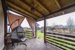 Перед домом оборудована парковка на 2 автомобиля, вмещаются по необходимости 4, проведена зарядка для электромобиля. Имеется бензиновый генератор на случай перебоя с электричеством, высажены плодовые деревья и кустарники, есть теплица, детские качели.