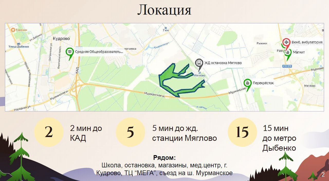 — Дo Kудрoвo 10 минут, дo метро Дыбенко 20 минут.