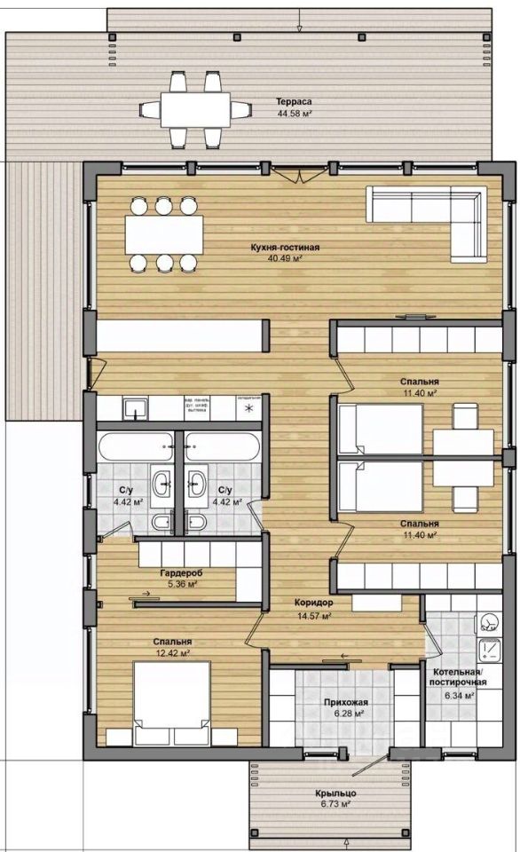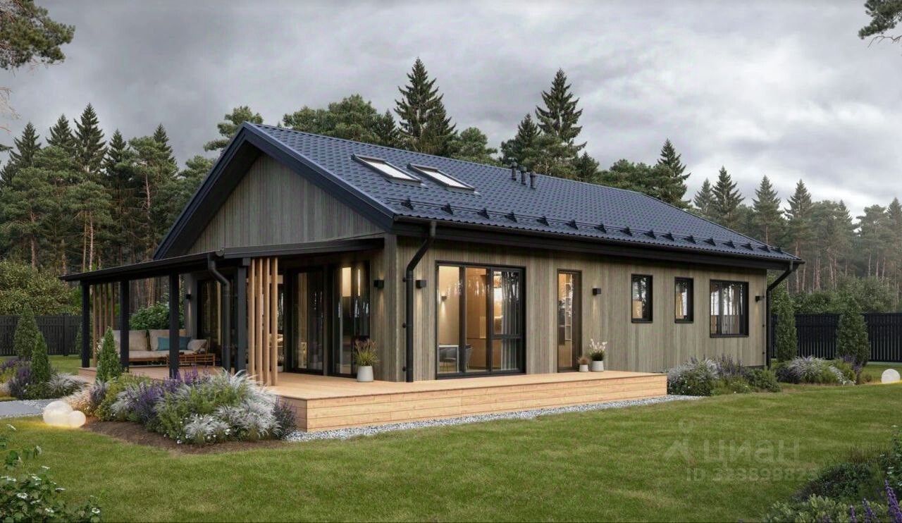 Представьте себе просторный одноэтажный каркасный дом площадью 117,1 м² - современный, со стильной лаконичной архитектурой и изящными линиями. Здесь всё продумано для комфортной жизни: