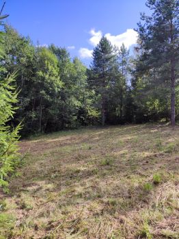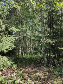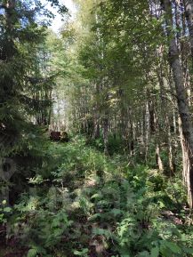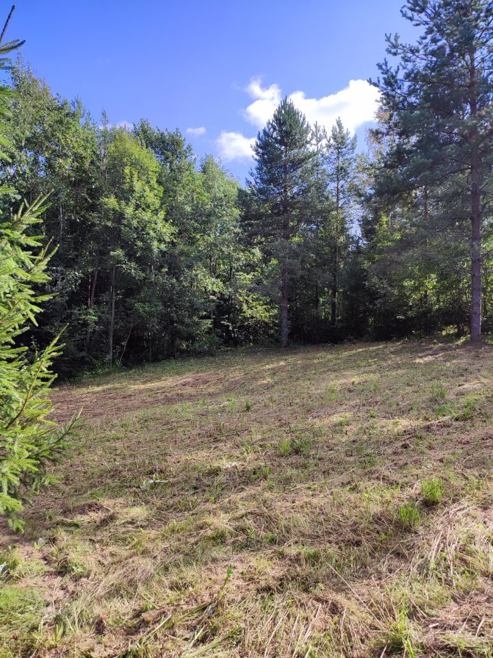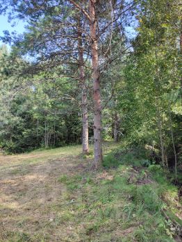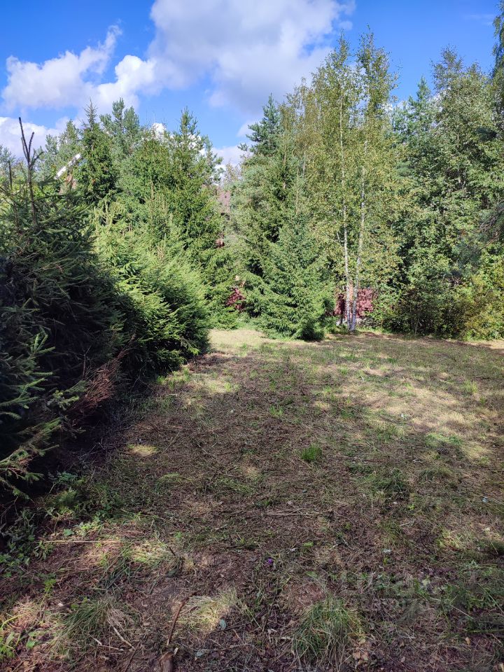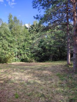 На участке высокие сосны и березы. 2 соседа. По границе с соседями с одной стороны кирпичный забор, со второй стороны участка плотный забор из елок (стеной) Приобретен в 2000 году, приватизирован в январе 2019г.
