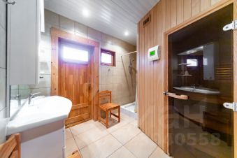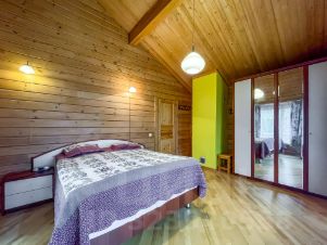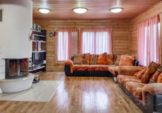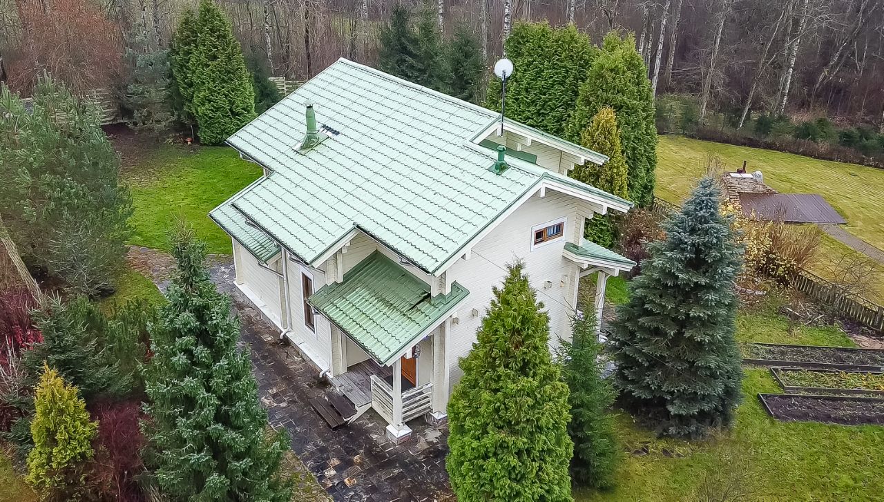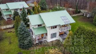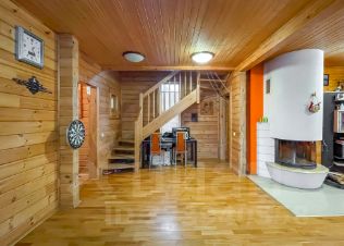 Фундамент монолитный железобетонный. Общая площадь внутренних помещений 134.2 м/кв. Дом изготовлен из профилированного клееного бруса Greenside Scandic, производителем которого является компания застройщик данного КП Greenside. Отапливается дом с помощью электрических конвекторов, а также высокоэкономичным итальянским камином печью на дровах, теплый пол в прихожей, во всех с/у и сауне, в подсобном помещении, плита газовая баллоны 50 литров, горячая вода бойлер 200 литров. Пол в доме из массивной доски дуба под лаком, в вспомогательных зонах - кафель. Подключен высокоскоростной интернет Medinet, установлено 2 спутника для ТВ.
