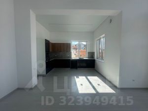 Стильная кухня-гостиная с готовым кухонным гарнитуром — сразу для жизни и приёма гостей.