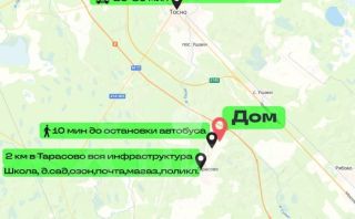 Отличное место для постоянного проживания и отдыха! В 2-х км -вся инфраструктура, школа, детский сад, поликлиника, Дом культуры и банк, пункты выдачи Озон и WВ и т.п. До г. Тосно 11 км, автобус N326 ходит каждый час (время в пути 20-30 минут). До автобусной остановки 5 минут пешком. От Тосно до Санкт-Петербурга можно добраться на электричке, автобусе и маршрутке (время в пути 40-50 минут).