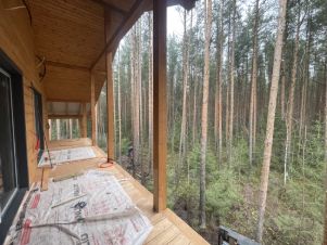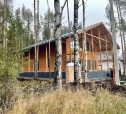 В доме: Комнаты 4 шт, обеспечивают комфортное размещение. 4 санузла и современная система биологической очистки стабилизируют качество отдыха на природе), большая кухня-гостиная 45 м2 не оставит равнодушным ни одну хозяйку и гостей, на втором этаже просторный балкон 18 м2 с видом на сосновый лес, уютная сауна с большими окнами и подогреваемая купель на терассе, создает незабываемую атмосферу расслабления души и тела.