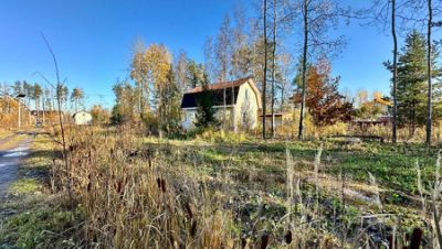 На 2-х участках, расположены каркасные 2-этажные дома общ. пл. 82 м² каждый, на свайном фундаменте. Подойдут как временное жильё на период стройки или как стартовые дачные дома.