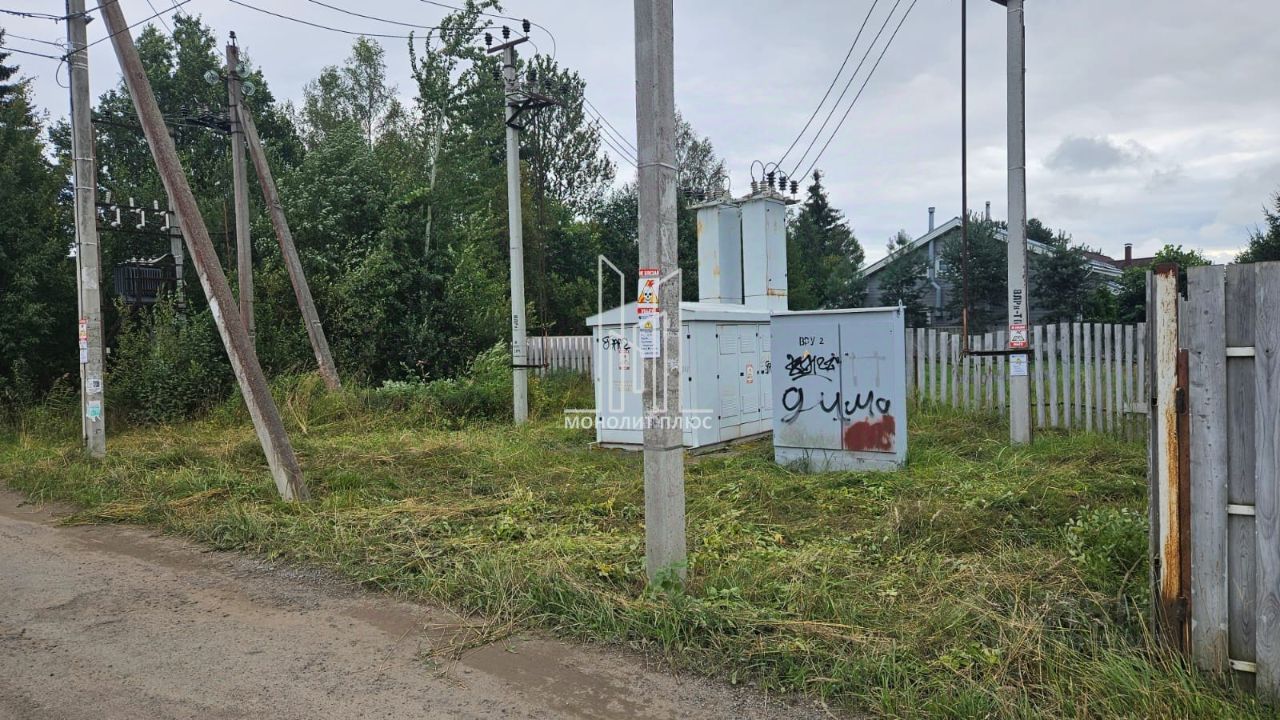 На участке стоит электрическая будка.