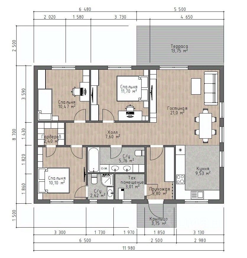 -Просторная терраса — идеальна для отдыха и уютных вечеров на свежем воздухе