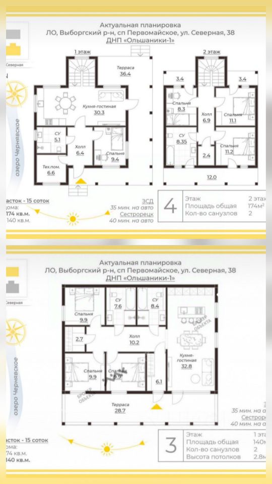 Оба построены по технологии СИП-панелей — тепло зимой, прохладно летом, экономия на отоплении.