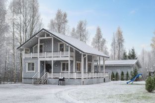 Фасады облицованы имитацией бруса 3,6 см, крыши — металлочерепица.