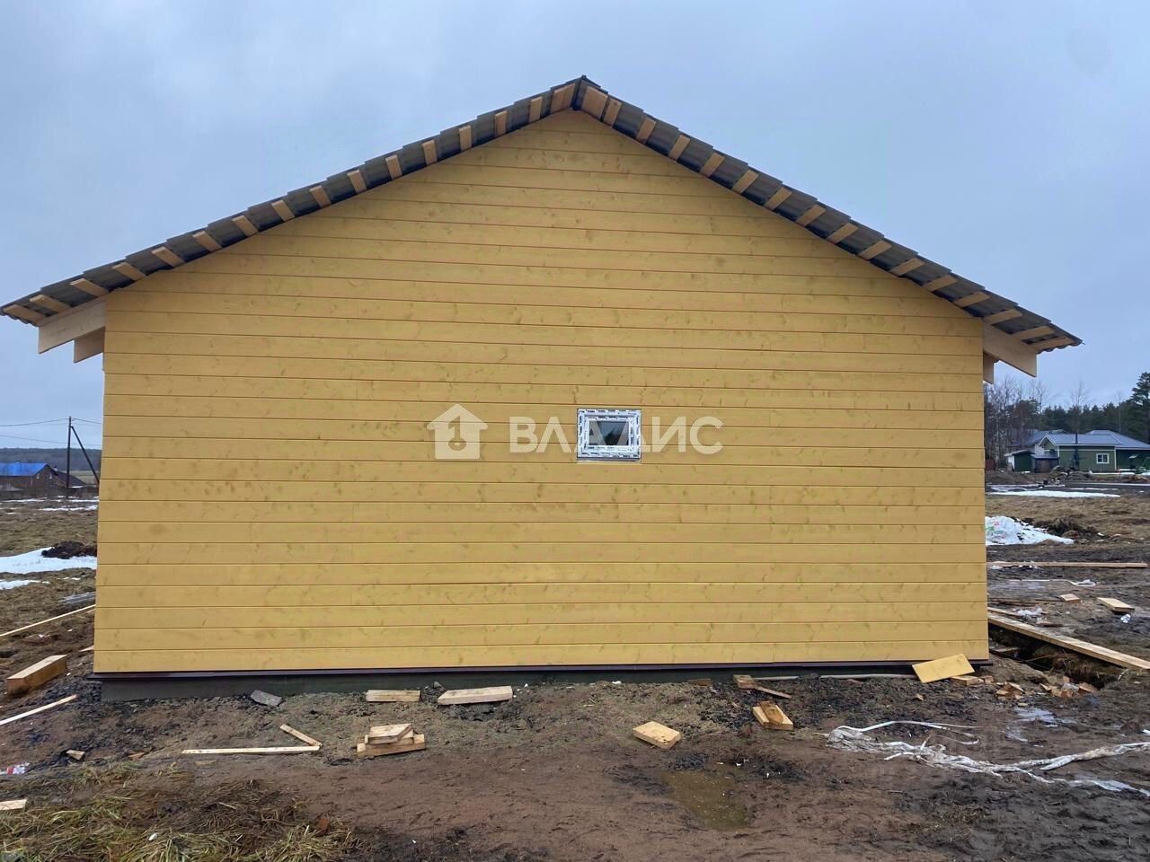 В доме сделаны стены, перегородки (имитация бруса), осталась покраска, плинтусовка. Также необходимо закончить террасу (зашить потолок и постелить полы). Подключена электрика в полах, но ее осталось к дому подвести