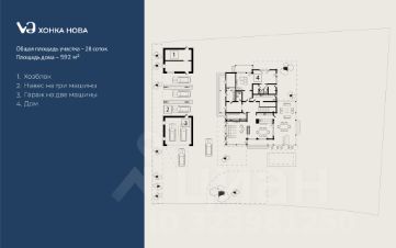 - гараж (87 м², теплый контур) на 2 автомобиля с хозяйственным блоком и котельной.