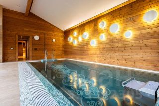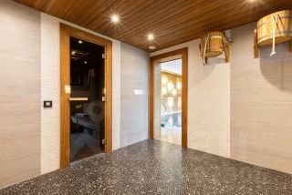 Участок 25 соток, на котором располагаются два дома: основной и гостевой (240 мкв) который включает спа зону и выход на террасу