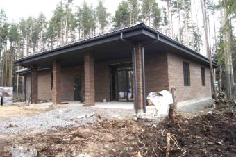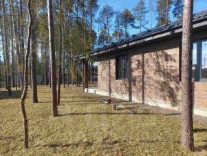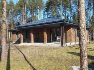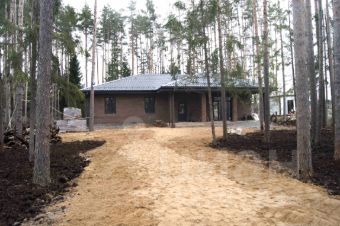 Первый этаж: три спальни (16,19 и 22кв.м), гостиная-кухня 51 кв.м, два санузла (1,6 и 9,5кв.м), гардеробная, прихожая, коридор, котельная и крытая терраса 29кв.м. Высота потолков 3,2м. Второй этаж техническое помещение. Отопление теплые полы (от электрического котла, который при подключении газа может стать дублирующим газовому котлу).