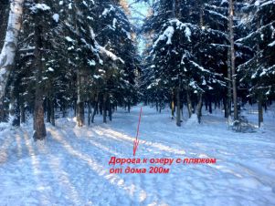 100 метров от коттеджа зона отдыха со спортивной и детской площадками. Озеро с песчаным пляжем 200 метров, в 100 метрах хвойный лес - курортный лесопарк.