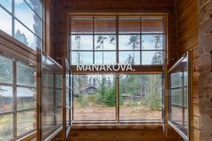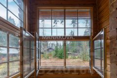 Второй свет и большие окна создают ощущение лёгкости и простора, наполняют дом солнечным светом и открывают прекрасный вид на зелёный участок и хвойный лес.