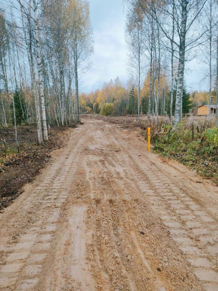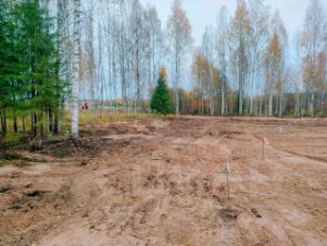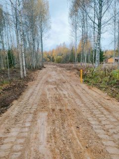 Участок полностью подготовлен под строительство дома: Сделана дорога к участку, спланирован, отсыпан, выровнен, дренаж по периметру.
