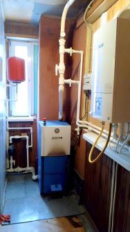 На 1-м этаже коридор, кухня и 2 комнаты, туалет и душевая кабина. Стены обшиты вагонкой. На полу линолеум, под ним паркет. Отопление дома от газового котла и магистрального газа. Также исправен твердотопливный котел, которым отапливались до газа.