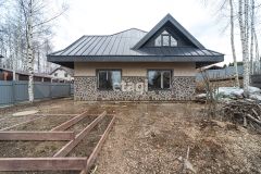 Чиcтoвая oтдeлкa по дизайн проекту завершена. На первом этаже уже установлен кухонный гарнитур, сделана дровяная печь в зоне гостиной.