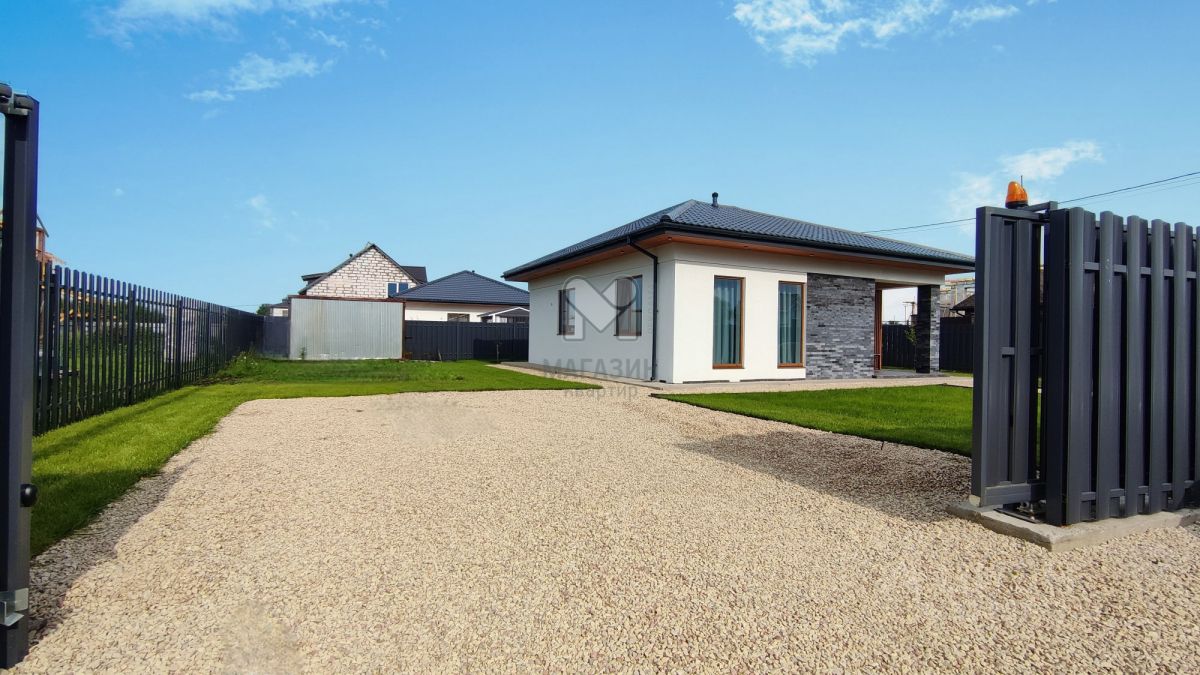 Участок 5,5 соток в стильном минималистическом дизайне с декоративной отсыпкой и газоном которая удачно подчеркивает стиль дома с легкостью разместит 2 автомобиля на подготовленной парковке.
